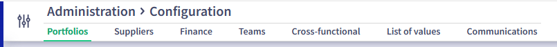 - Portfolios : configuration of the Project Portfolios module (default portfolios, reference management, weather settings, value analysis axis settings)
