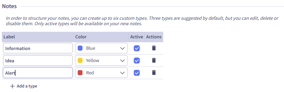 Edit the labels of the default note types