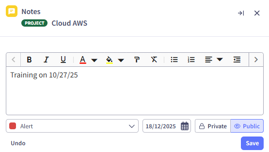 Public notes: visible to any collaborator with read access to the parent object
