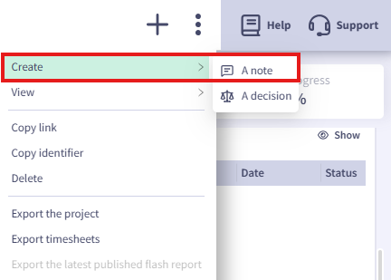 Notes can be attached to the following objects: projects, activities, suppliers, and contracts.