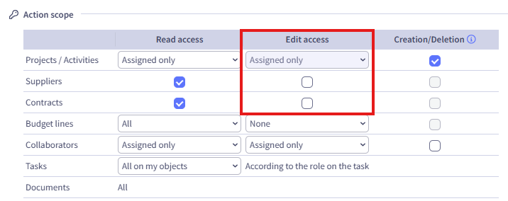 (same permissions as creation, plus Admin rights)