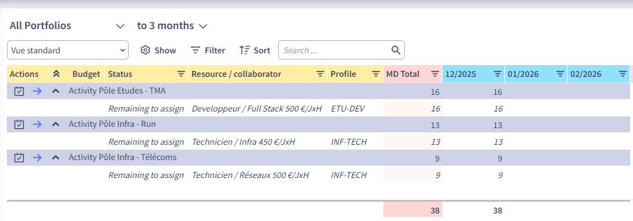 Thus, by month and by profile, we can therefore identify whether the need can be covered and whether the employee occupancy rate is sufficient.
