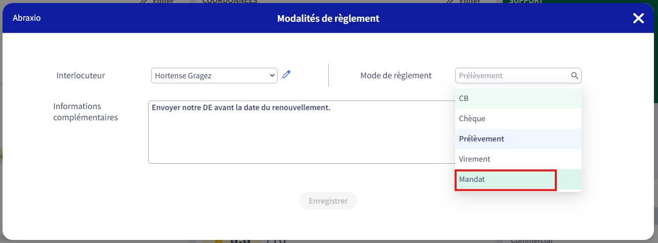 Added the value "mandate" to the Payment Terms