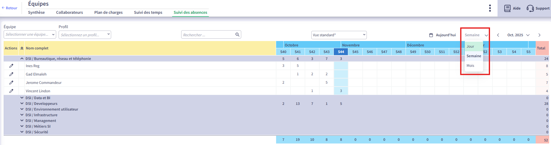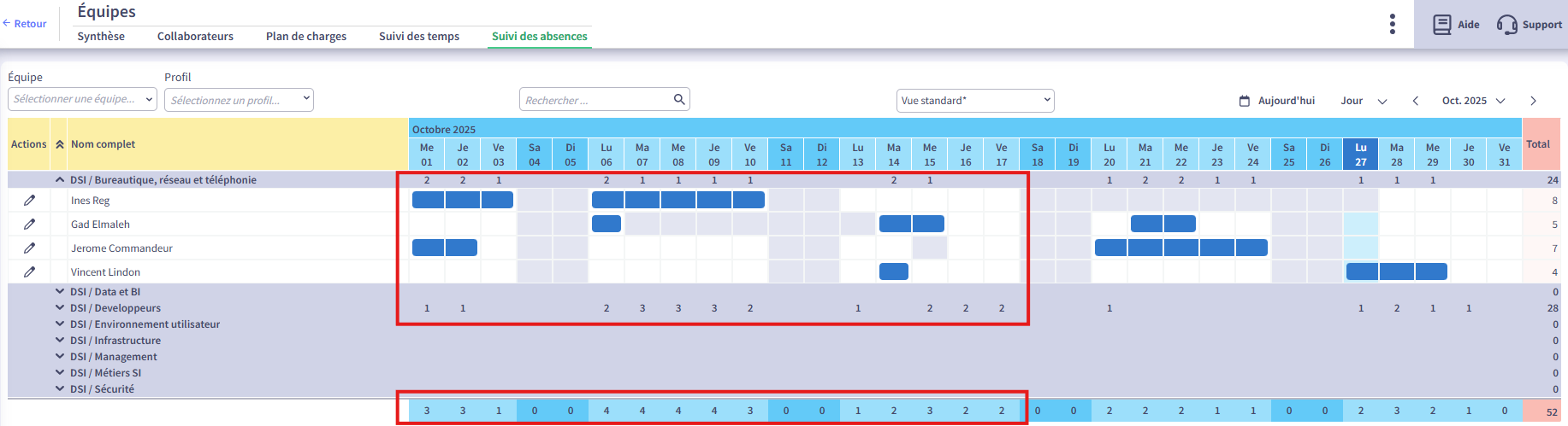 We took the opportunity to add the total leave per Team.