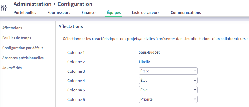 In the details section for a collaborator in the Teams module, under the Assignments tab, it is now possible to add up to 4 additional columns from the Teams module settings: