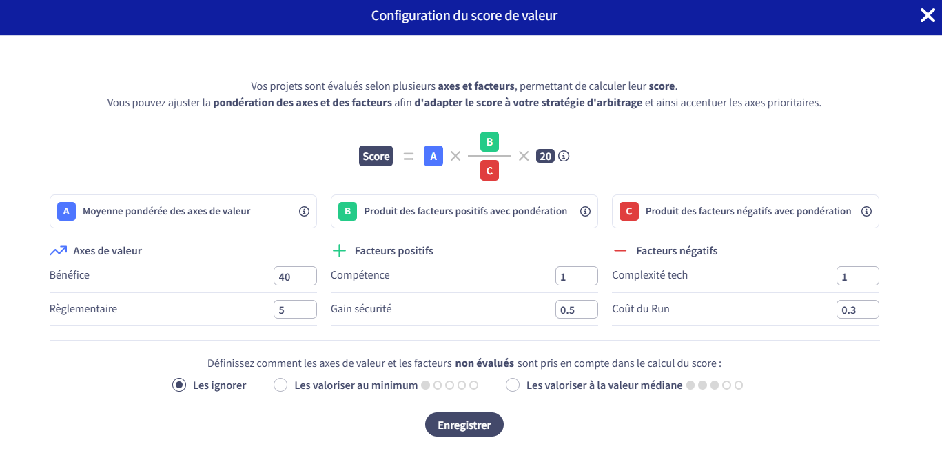 Portfolios - Weighting of factors in project scoring