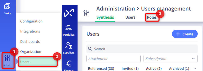 - Administrator: Grants access to the Admin module (Settings, API integration, user management, license allocations, etc.)
