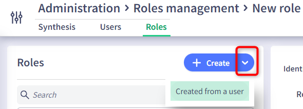 In order not to start from a blank setting, you can, by clicking on the chevron next to the "Create" button, Create a role from a user.