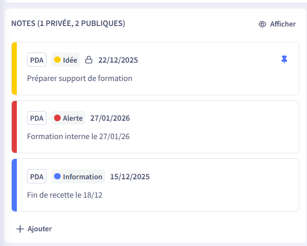 Les notes sont triées de la plus ancienne à la plus récente et peuvent être :