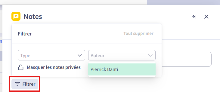 Notes publiques : visibles par tout collaborateur ayant accès en lecture à l’objet parent.