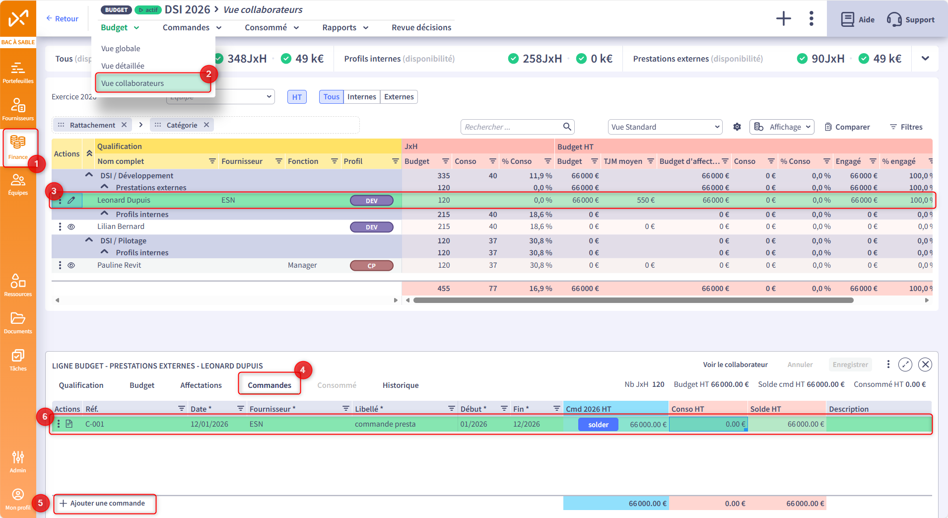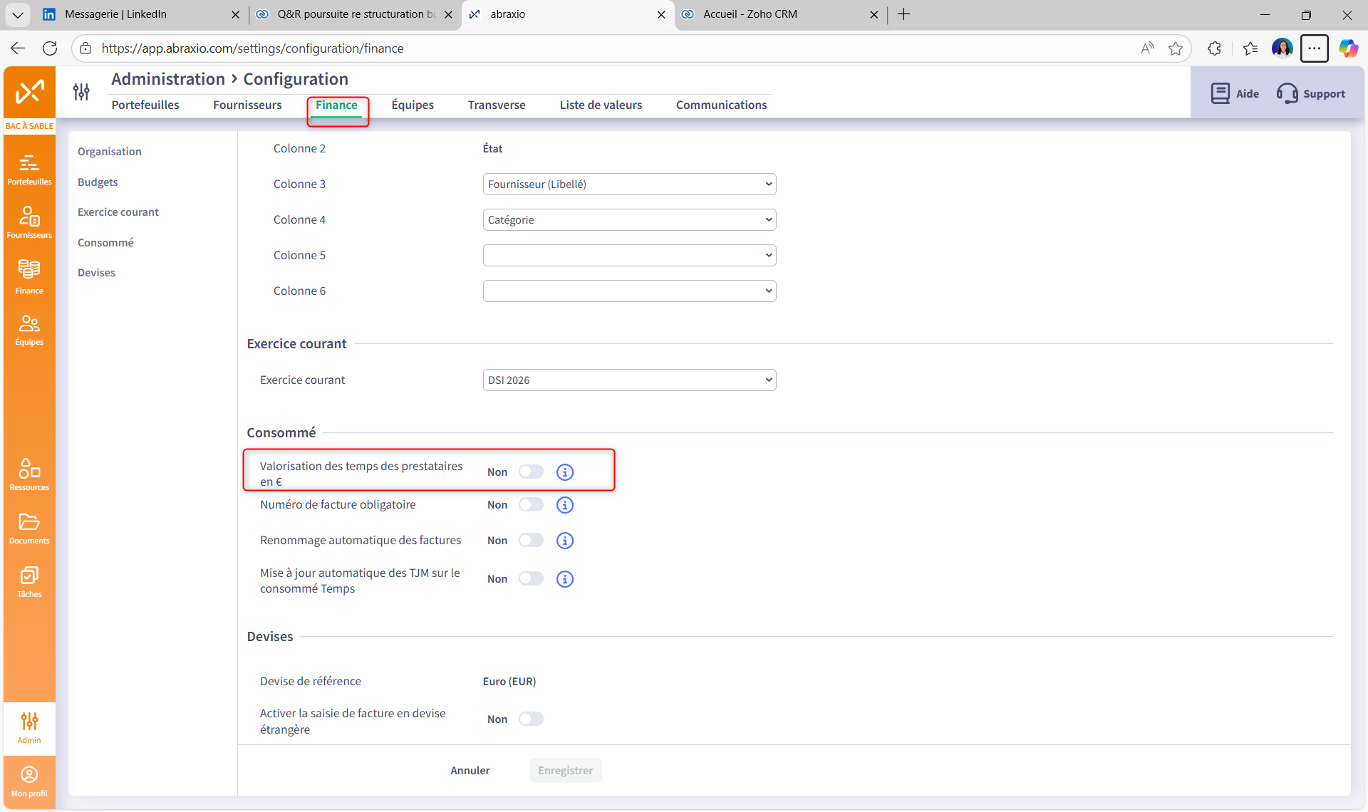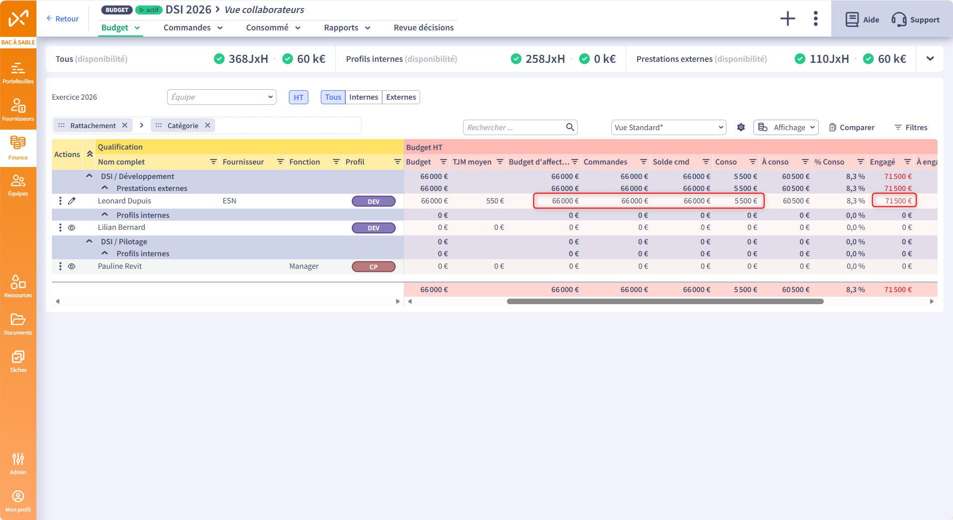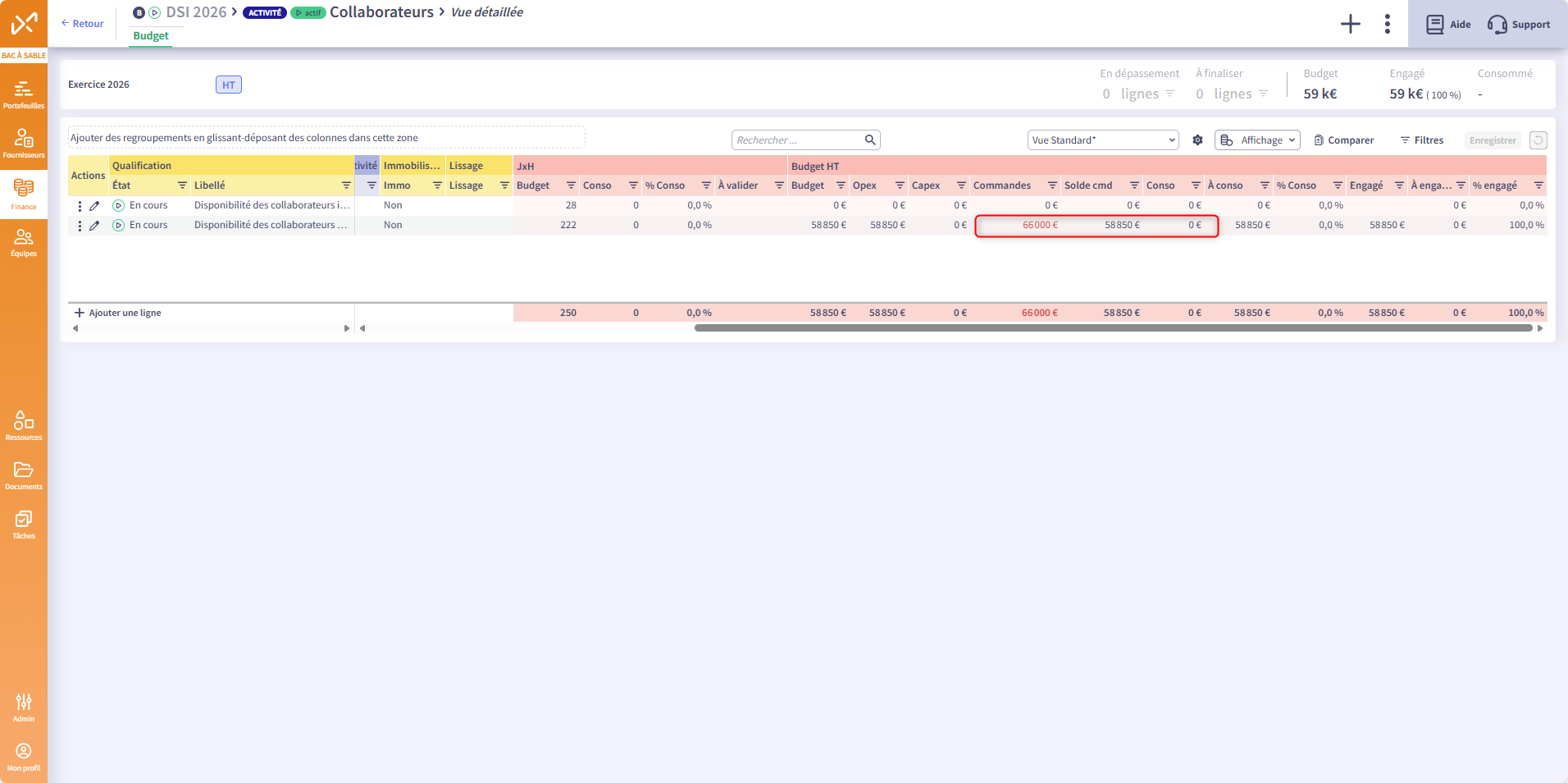 Lorsque cette option est activée, les temps passés par le prestataires sont automatiquement valorisés en € sur les lignes budgétaires concernées.