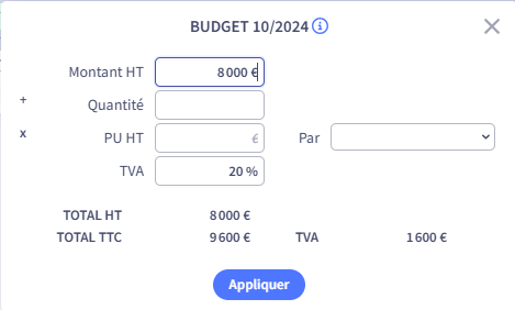 Pour tenir à jour votre budget prévisionnel, vous devez, dans Abraxio, écraser le montant du budget des lignes budgétaires en fonction de ces éléments :
